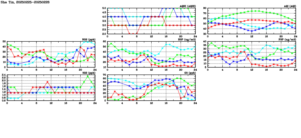 | Air Quality Data Time Series in Sha Tin (2025/02/28) | ( Line colors: Day -3 Day -2 Day -1 Current day ) | 2D Map Current AQHI |