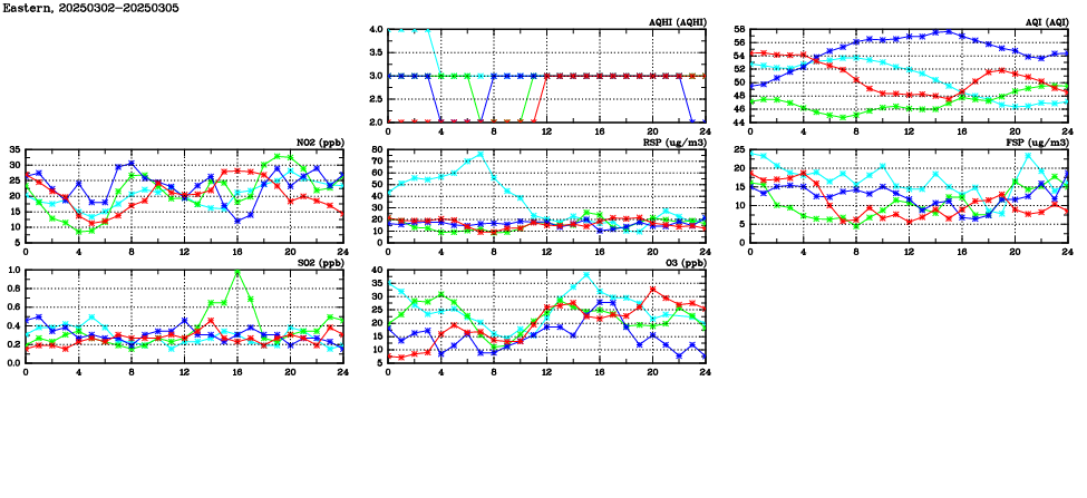 | Air Quality Data Time Series in Eastern (2025/03/05) | ( Line colors: Day -3 Day -2 Day -1 Current day ) | 2D Map Current AQHI |