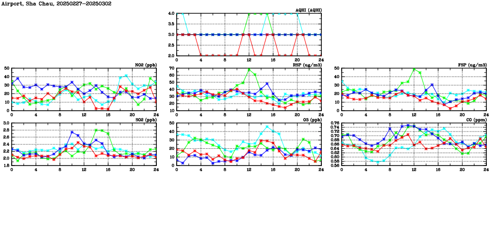 | Parameters: | AQHI | AQI | RSP | FSP | NO2 | SO2 | O3 | CO | Temp | WS | WD |
