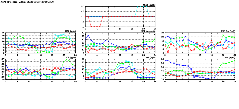 | Air Quality Data Time Series in Airport, Sha Chau (2025/03/06) | ( Line colors: Day -3 Day -2 Day -1 Current day ) | 2D Map Current AQHI |