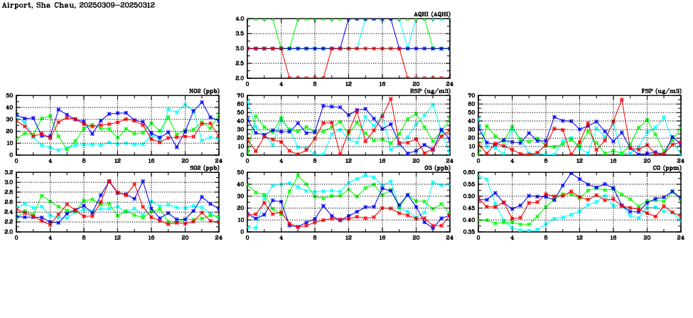 | Air Quality Data Time Series in Airport, Sha Chau (2025/03/12) | ( Line colors: Day -3 Day -2 Day -1 Current day ) | 2D Map Current AQHI |