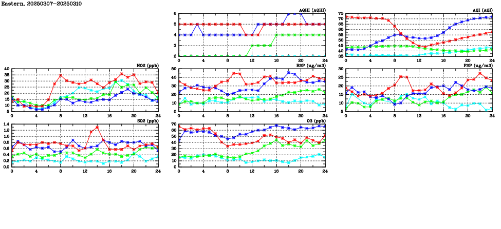 | Air Quality Data Time Series in Eastern (2025/03/10) | ( Line colors: Day -3 Day -2 Day -1 Current day ) | 2D Map Current AQHI |