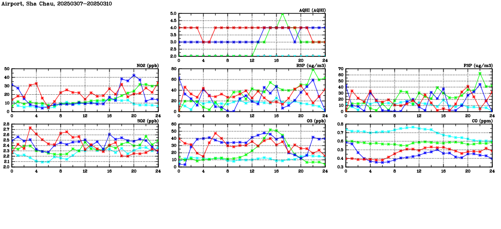 | Air Quality Data Time Series in Airport, Sha Chau (2025/03/10) | ( Line colors: Day -3 Day -2 Day -1 Current day ) | 2D Map Current AQHI |