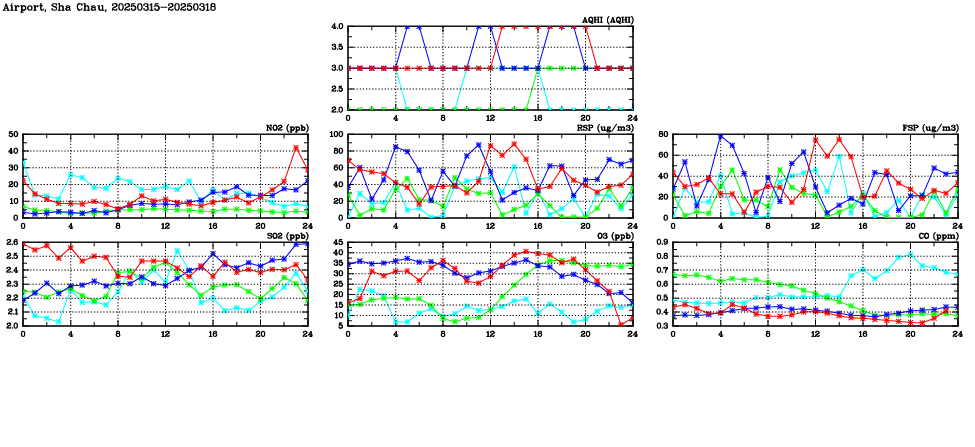 | Air Quality Data Time Series in Airport, Sha Chau (2025/03/18) | ( Line colors: Day -3 Day -2 Day -1 Current day ) | 2D Map Current AQHI |