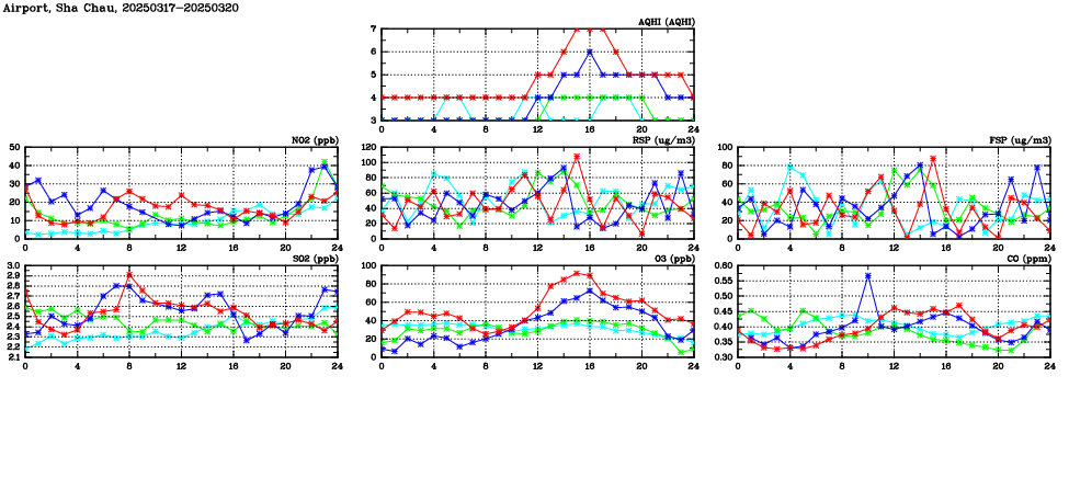 | Air Quality Data Time Series in Airport, Sha Chau (2025/03/20) | ( Line colors: Day -3 Day -2 Day -1 Current day ) | 2D Map Current AQHI |