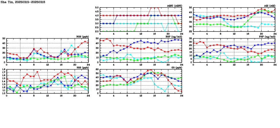 | Air Quality Data Time Series in Sha Tin (2025/03/18) | ( Line colors: Day -3 Day -2 Day -1 Current day ) | 2D Map Current AQHI |