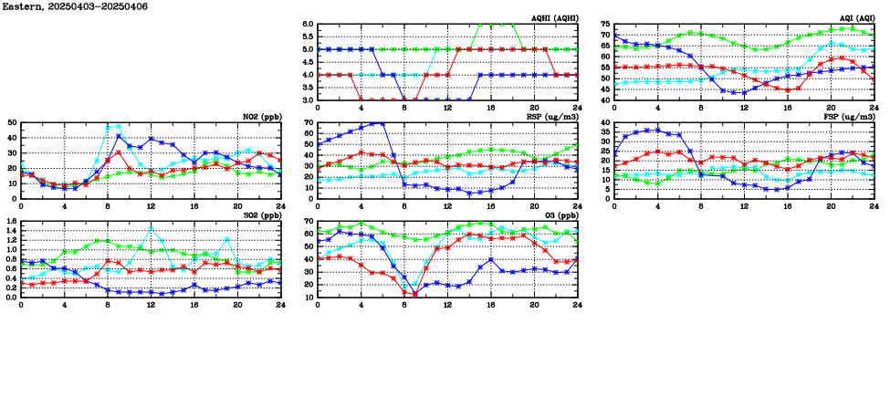 | Air Quality Data Time Series in Eastern (2025/04/06) | ( Line colors: Day -3 Day -2 Day -1 Current day ) | 2D Map Current AQHI |