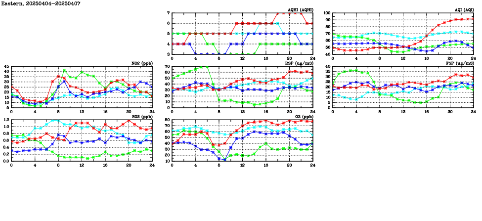 | Air Quality Data Time Series in Eastern (2025/04/07) | ( Line colors: Day -3 Day -2 Day -1 Current day ) | 2D Map Current AQHI |