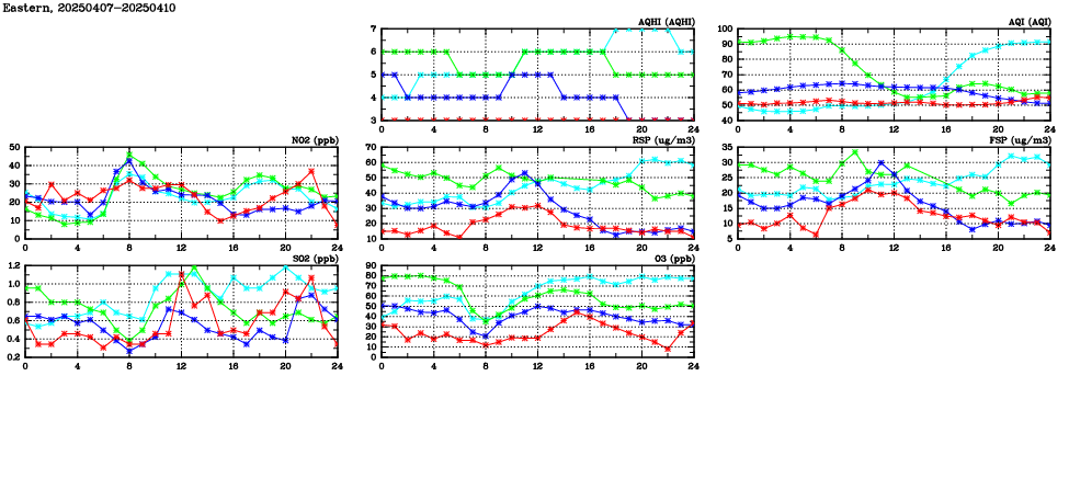 | Air Quality Data Time Series in Eastern (2025/04/10) | ( Line colors: Day -3 Day -2 Day -1 Current day ) | 2D Map Current AQHI |