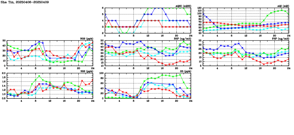 | Air Quality Data Time Series in Sha Tin (2025/04/09) | ( Line colors: Day -3 Day -2 Day -1 Current day ) | 2D Map Current AQHI |