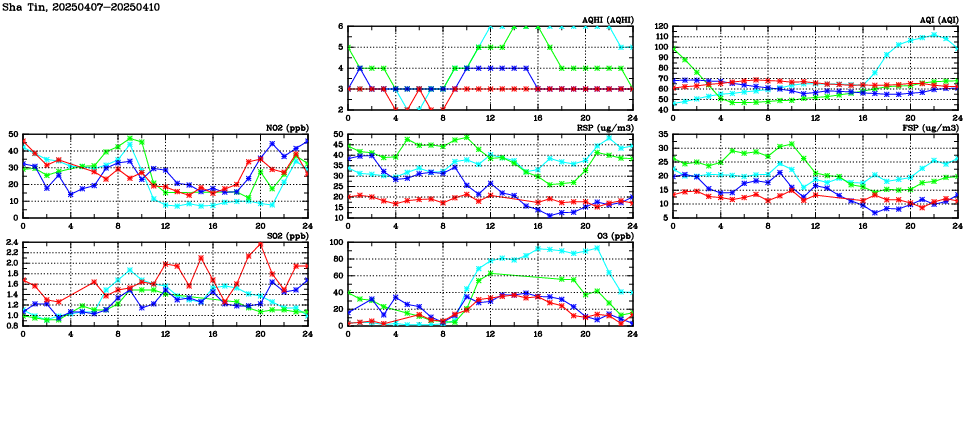 | Air Quality Data Time Series in Sha Tin (2025/04/10) | ( Line colors: Day -3 Day -2 Day -1 Current day ) | 2D Map Current AQHI |