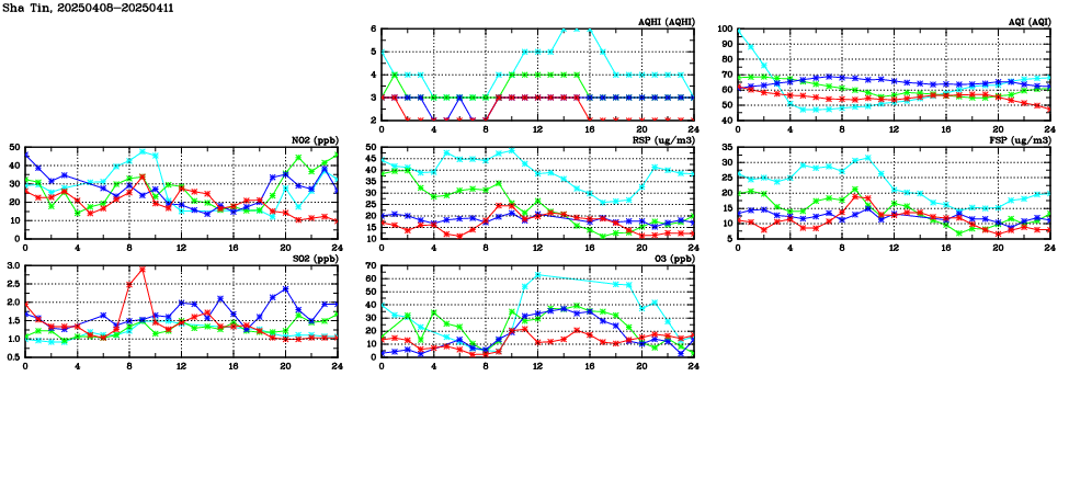 | Air Quality Data Time Series in Sha Tin (2025/04/11) | ( Line colors: Day -3 Day -2 Day -1 Current day ) | 2D Map Current AQHI |