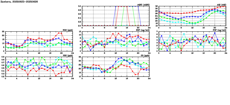 | Air Quality Data Time Series in Eastern (2025/06/26) | ( Line colors: Day -3 Day -2 Day -1 Current day ) | 2D Map Current AQHI |