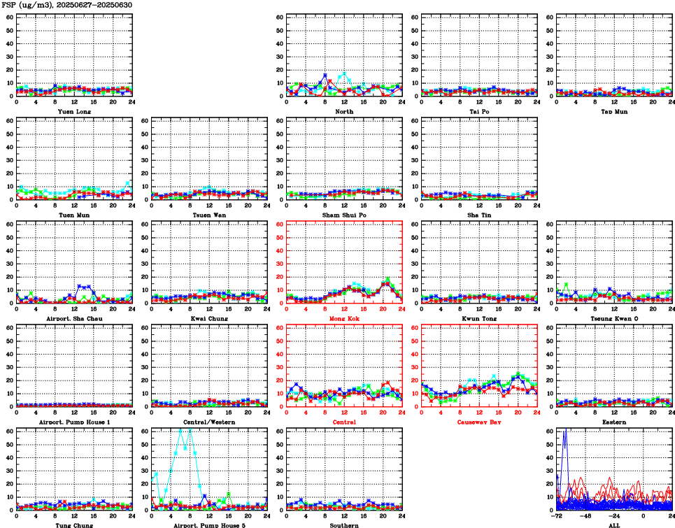 | Air Quality Data Time Series for FSP (2025/06/30) | ( Line colors: Day -3 Day -2 Day -1 Current day ) | 2D Map Current AQHI |