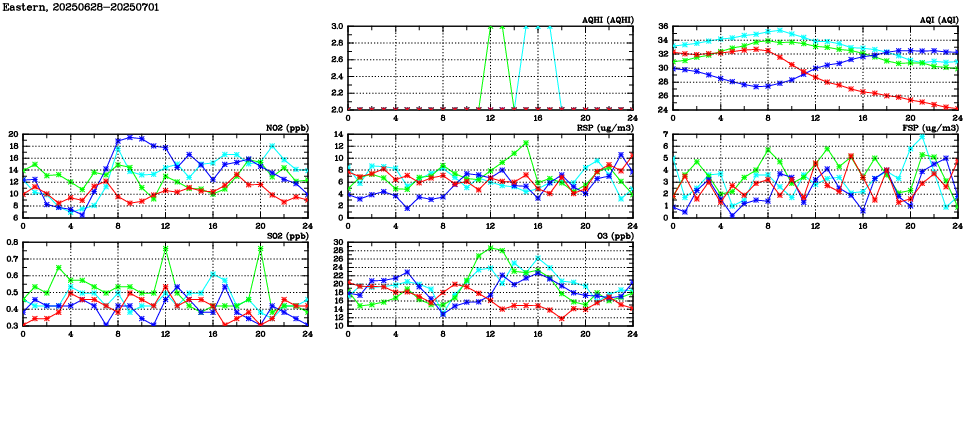 | Air Quality Data Time Series in Eastern (2025/07/01) | ( Line colors: Day -3 Day -2 Day -1 Current day ) | 2D Map Current AQHI |