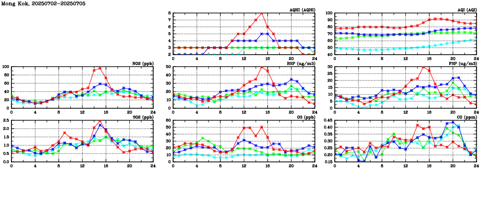 | Parameters: | AQHI | AQI | RSP | FSP | NO2 | SO2 | O3 | CO | Temp | WS | WD |