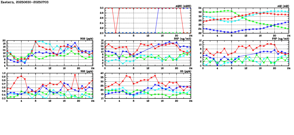 | Air Quality Data Time Series in Eastern (2025/07/03) | ( Line colors: Day -3 Day -2 Day -1 Current day ) | 2D Map Current AQHI |