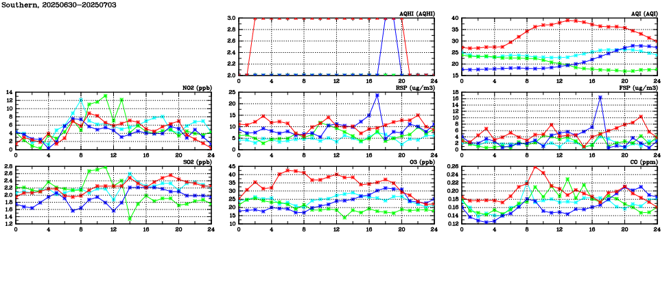 | Air Quality Data Time Series in Southern (2025/07/03) | ( Line colors: Day -3 Day -2 Day -1 Current day ) | 2D Map Current AQHI |