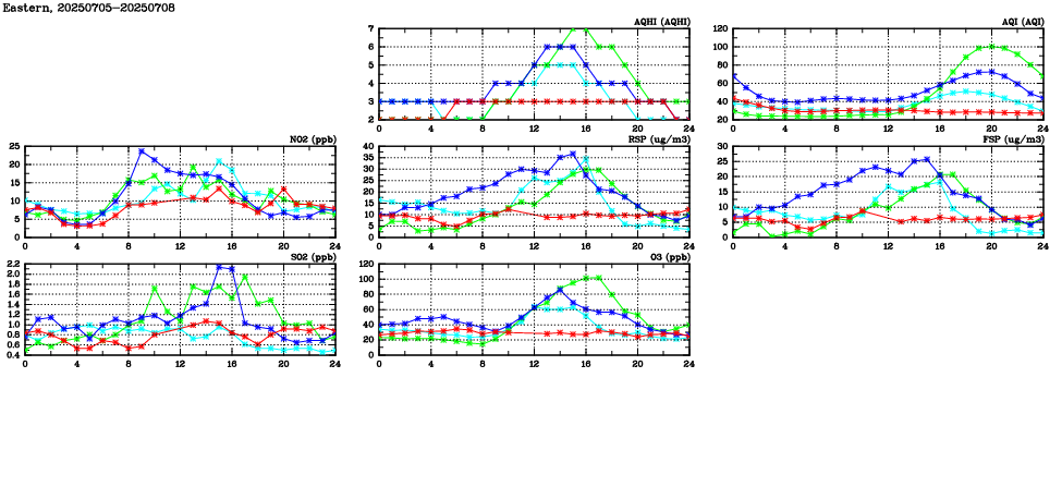 | Air Quality Data Time Series in Eastern (2025/07/08) | ( Line colors: Day -3 Day -2 Day -1 Current day ) | 2D Map Current AQHI |
