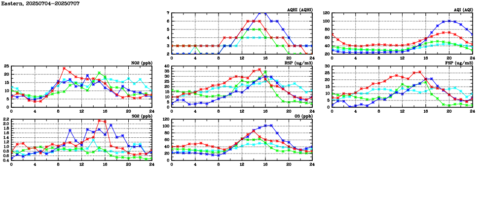 | Air Quality Data Time Series in Eastern (2025/07/07) | ( Line colors: Day -3 Day -2 Day -1 Current day ) | 2D Map Current AQHI |