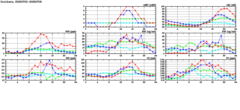 | Air Quality Data Time Series in Southern (2025/07/06) | ( Line colors: Day -3 Day -2 Day -1 Current day ) | 2D Map Current AQHI |