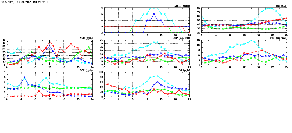 | Air Quality Data Time Series in Sha Tin (2025/07/10) | ( Line colors: Day -3 Day -2 Day -1 Current day ) | 2D Map Current AQHI |