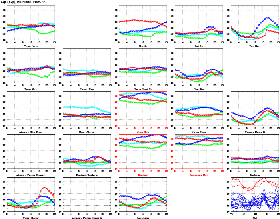 Parameters: | AQHI | AQI | RSP | FSP | NO2 | SO2 | O3 | CO | Temp | WS | WD |