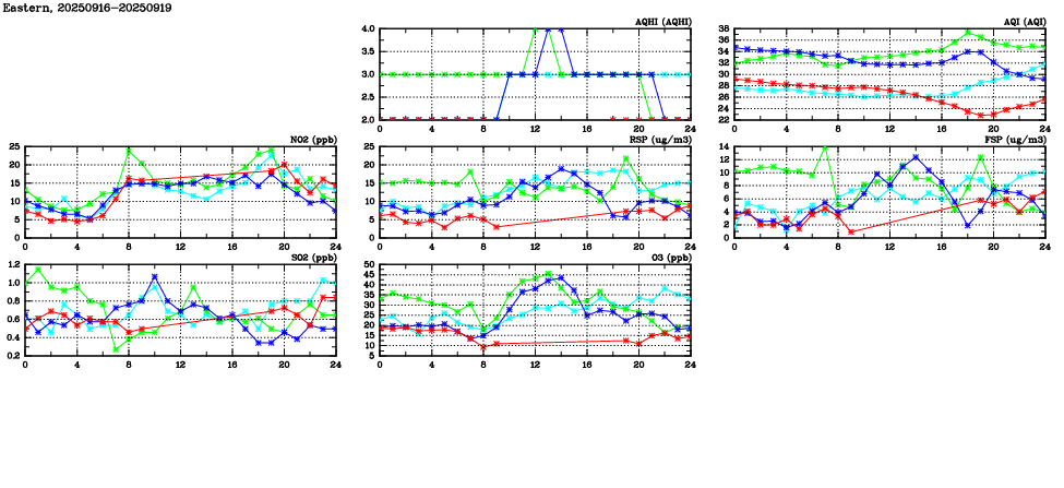 Air Quality Data Time Series in Eastern (2025/09/19) | ( Line colors: Day -3 Day -2 Day -1 Current day ) | 2D Map Current AQHI |