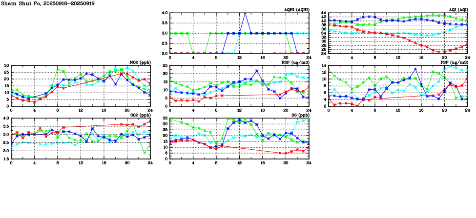 Air Quality Data Time Series in Sham Shui Po (2025/09/19) | ( Line colors: Day -3 Day -2 Day -1 Current day ) | 2D Map Current AQHI |