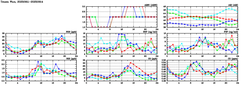 Parameters: | AQHI | AQI | RSP | FSP | NO2 | SO2 | O3 | CO | Temp | WS | WD |