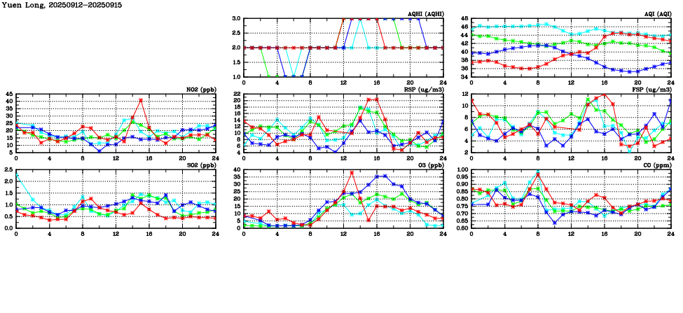 Parameters: | AQHI | AQI | RSP | FSP | NO2 | SO2 | O3 | CO | Temp | WS | WD |