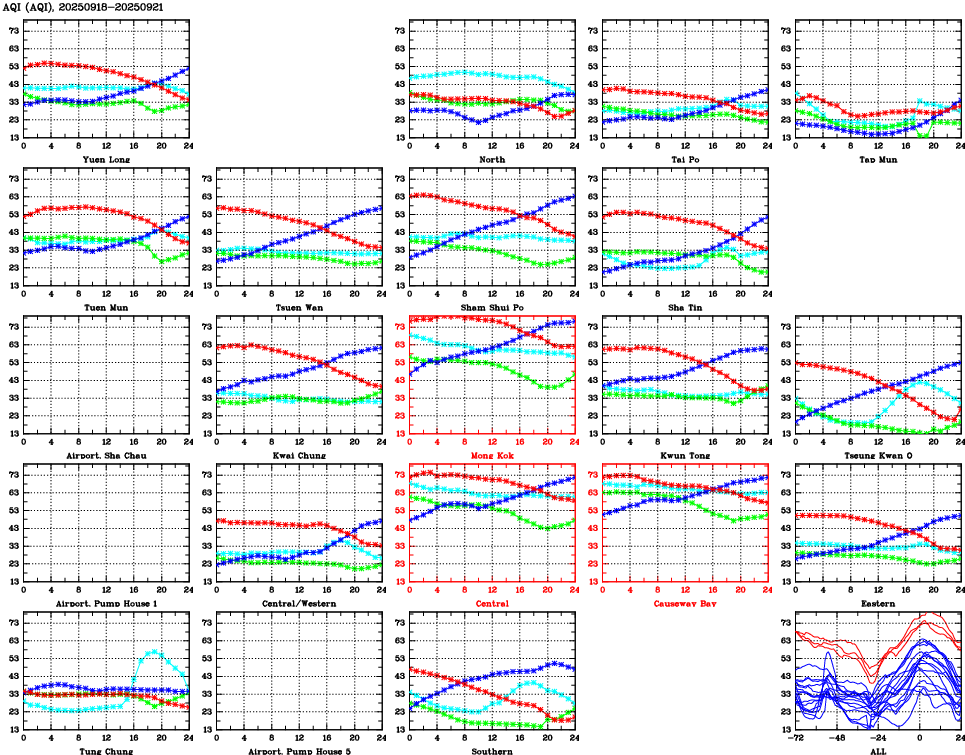 Parameters: | AQHI | AQI | RSP | FSP | NO2 | SO2 | O3 | CO | Temp | WS | WD |