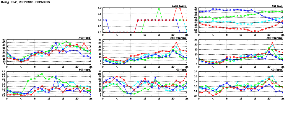 Parameters: | AQHI | AQI | RSP | FSP | NO2 | SO2 | O3 | CO | Temp | WS | WD |