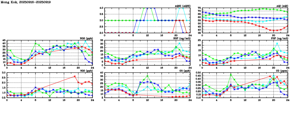 Parameters: | AQHI | AQI | RSP | FSP | NO2 | SO2 | O3 | CO | Temp | WS | WD |