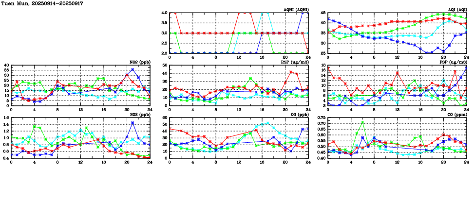Parameters: | AQHI | AQI | RSP | FSP | NO2 | SO2 | O3 | CO | Temp | WS | WD |