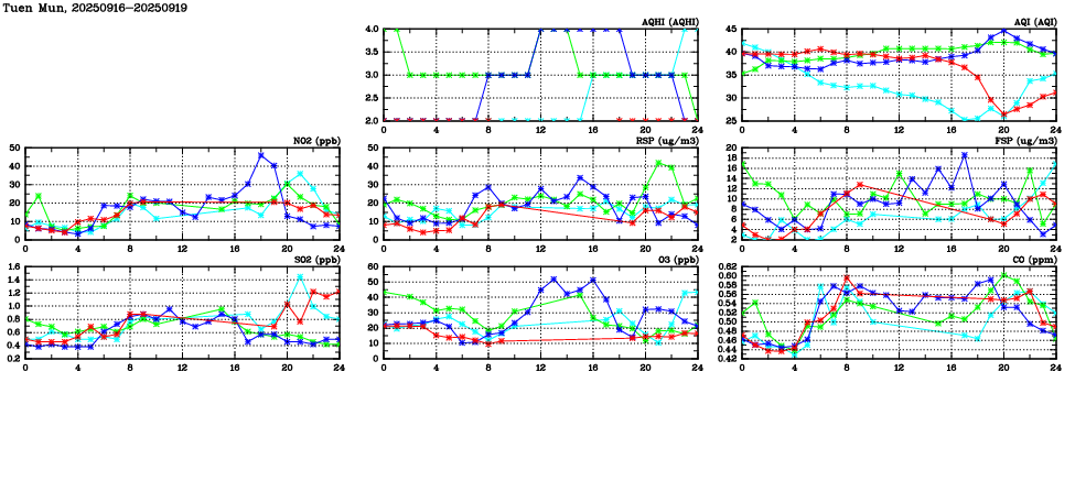 Parameters: | AQHI | AQI | RSP | FSP | NO2 | SO2 | O3 | CO | Temp | WS | WD |