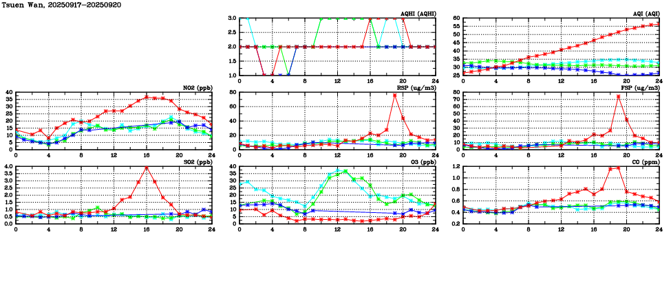 Parameters: | AQHI | AQI | RSP | FSP | NO2 | SO2 | O3 | CO | Temp | WS | WD |