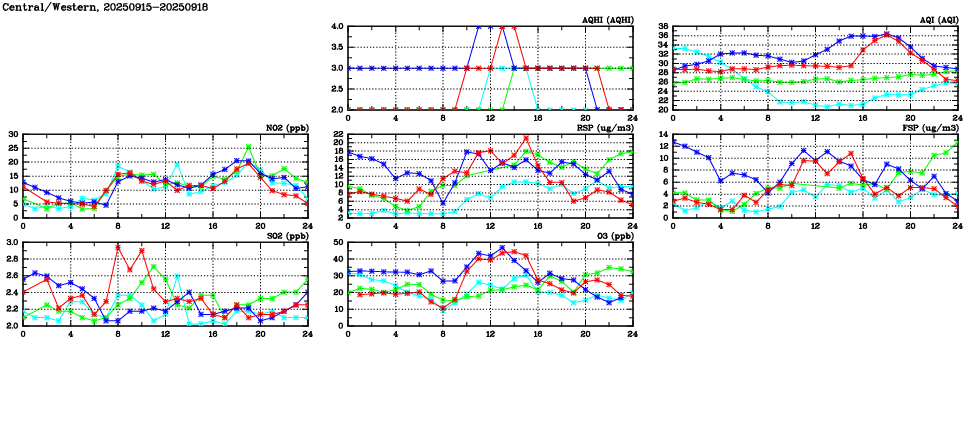 Parameters: | AQHI | AQI | RSP | FSP | NO2 | SO2 | O3 | CO | Temp | WS | WD |