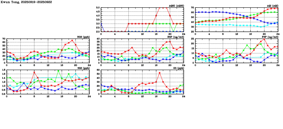 Parameters: | AQHI | AQI | RSP | FSP | NO2 | SO2 | O3 | CO | Temp | WS | WD |
