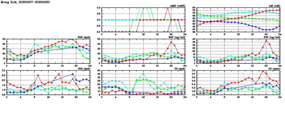 Parameters: | AQHI | AQI | RSP | FSP | NO2 | SO2 | O3 | CO | Temp | WS | WD |