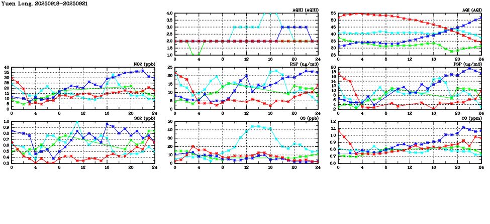 Parameters: | AQHI | AQI | RSP | FSP | NO2 | SO2 | O3 | CO | Temp | WS | WD |