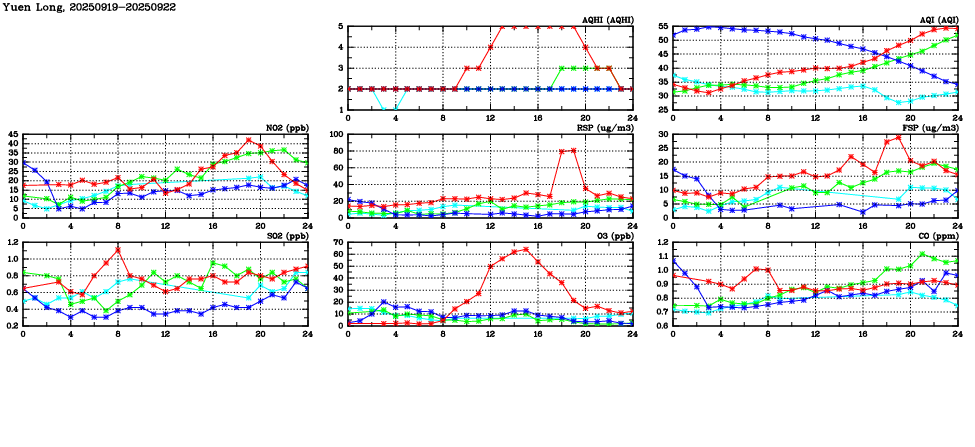 Parameters: | AQHI | AQI | RSP | FSP | NO2 | SO2 | O3 | CO | Temp | WS | WD |