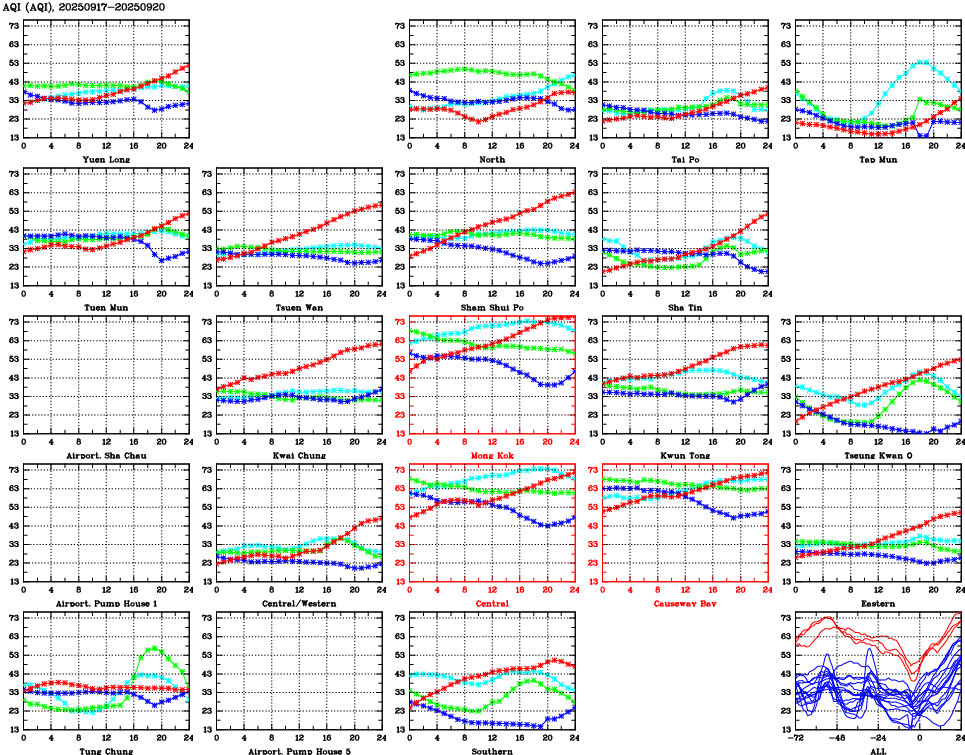 Parameters: | AQHI | AQI | RSP | FSP | NO2 | SO2 | O3 | CO | Temp | WS | WD |