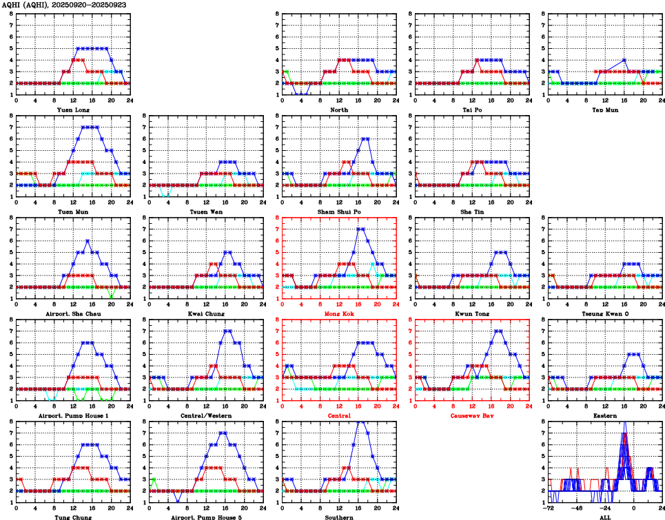 Parameters: | AQHI | AQI | RSP | FSP | NO2 | SO2 | O3 | CO | Temp | WS | WD |
