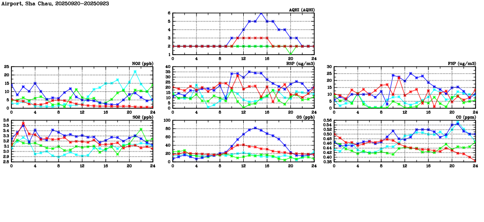 Parameters: | AQHI | AQI | RSP | FSP | NO2 | SO2 | O3 | CO | Temp | WS | WD |