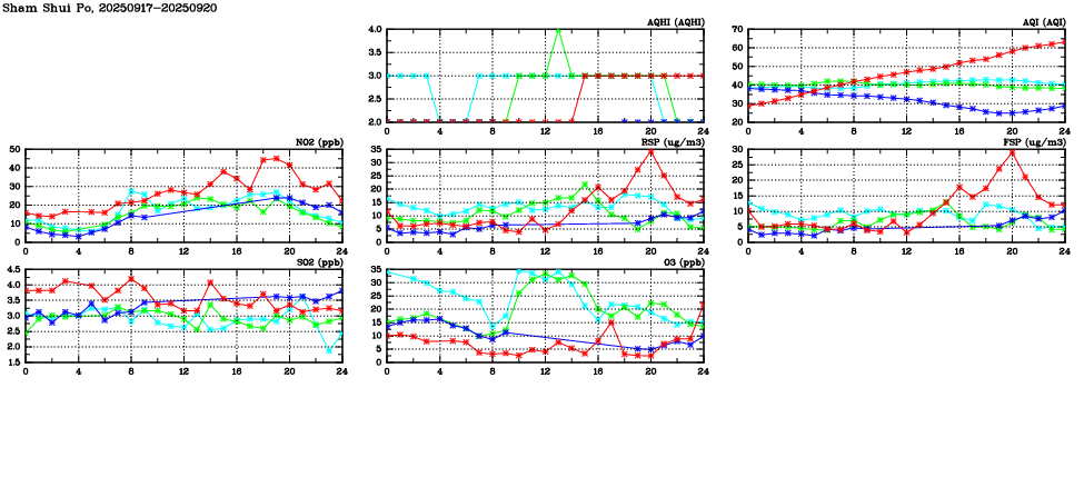 Air Quality Data Time Series in Sham Shui Po (2025/09/20) | ( Line colors: Day -3 Day -2 Day -1 Current day ) | 2D Map Current AQHI |