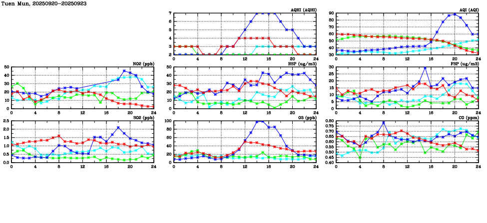 Parameters: | AQHI | AQI | RSP | FSP | NO2 | SO2 | O3 | CO | Temp | WS | WD |