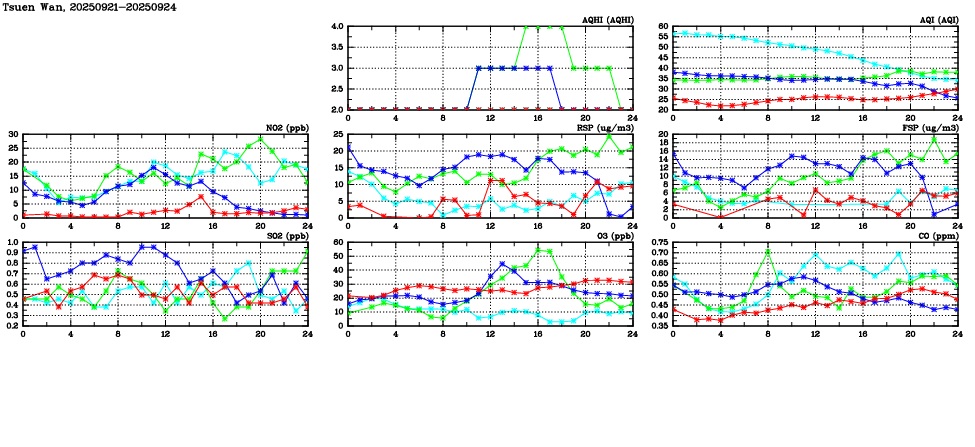 Parameters: | AQHI | AQI | RSP | FSP | NO2 | SO2 | O3 | CO | Temp | WS | WD |