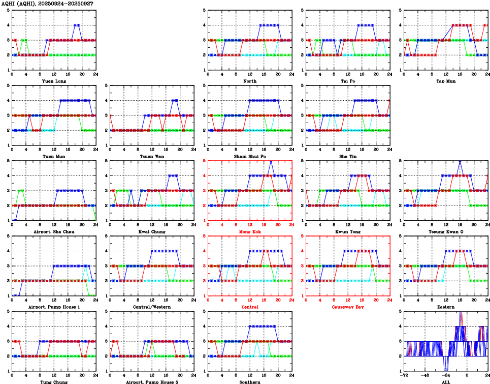 Parameters: | AQHI | AQI | RSP | FSP | NO2 | SO2 | O3 | CO | Temp | WS | WD |