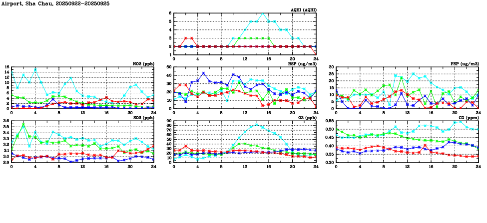 Parameters: | AQHI | AQI | RSP | FSP | NO2 | SO2 | O3 | CO | Temp | WS | WD |